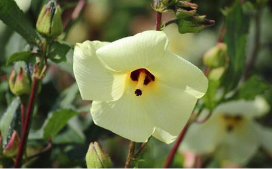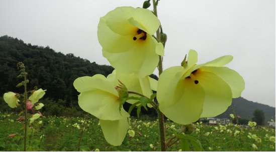 菜芙蓉,也常叫它金花葵、野芙蓉、黏干、山榆皮等, 是属锦葵科、秋葵属的一年生草本植物, 具有无限开花结果习性,用种子繁殖。