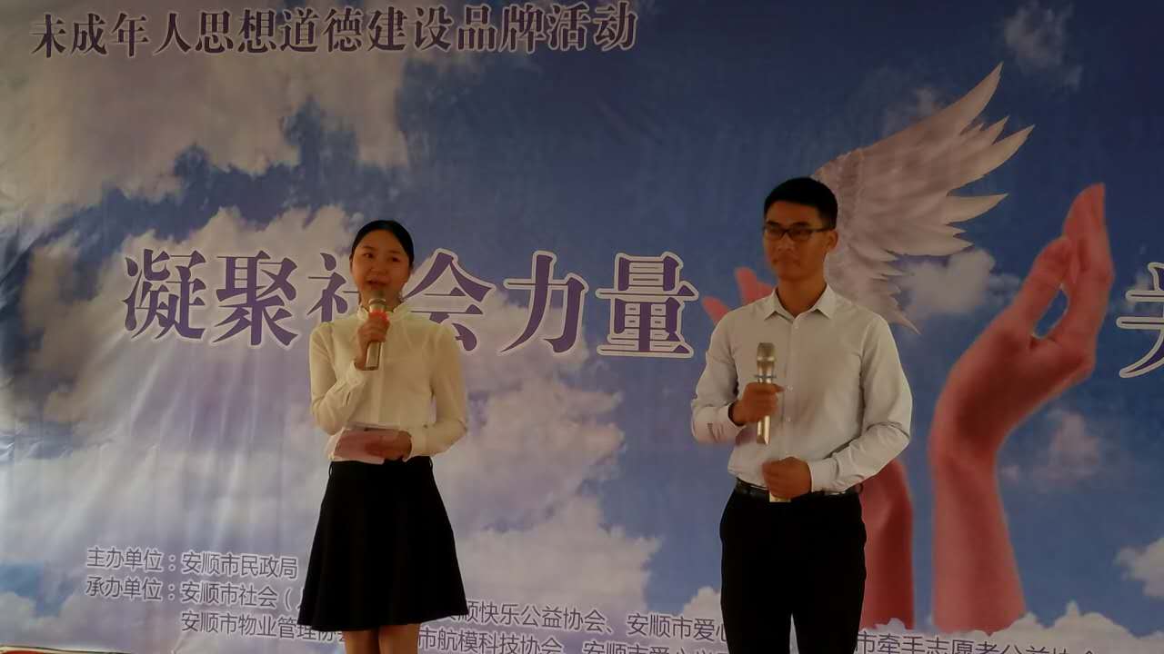 关爱未成年人教育走近折翼天使志愿活动于2017年5月15日在市福利院拉开帷幕,在市文明办、团市委、市计生协、市妇联和市志愿联合会的指导下,安顺市爱心义工社启动“快乐宝贝快来家”和“志愿1+1”志愿项目,邀请战略合作伙伴:市爱心商会、安老师工作站、市未成年心理健康教育辅导中心、星光艺术团、瑷心堂爱心社、圣原爱心社、陈发琳爱心社,爱心商家:鸿源大健康公司、阳吉美妆学院、贵州圣原分公司、焦·娇塑体美容美体公司等110名爱心义工参加了市民政局主办的“关心折翼天使”启动仪式。参与该活动的还有受民政局邀请的安顺快乐公益协会、市关爱公益等10家公益协会和两家民办非企业。