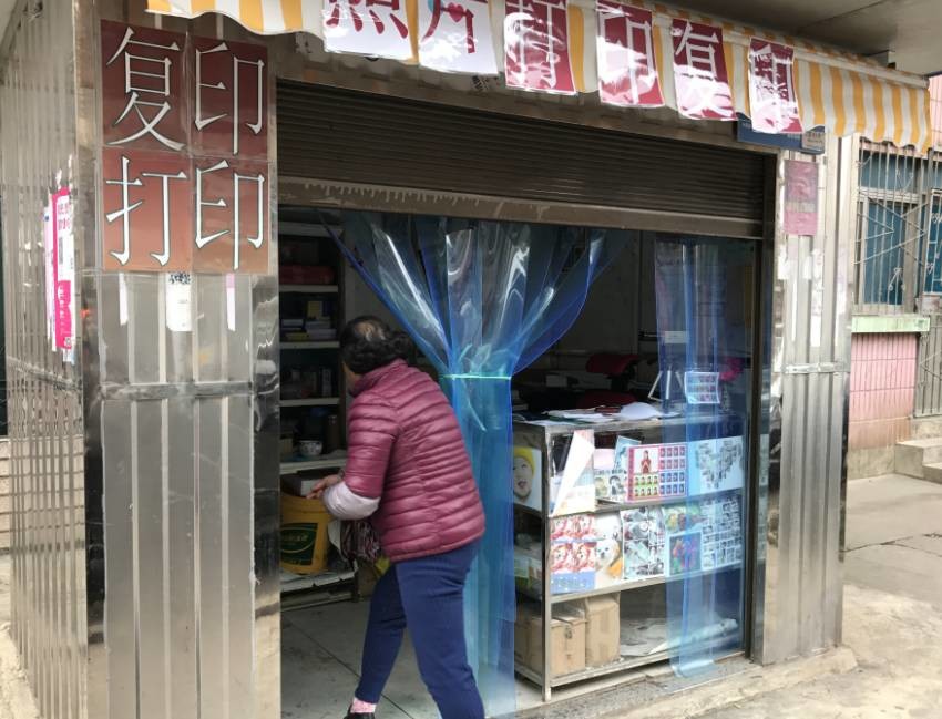 她正好遇到了一家复印店,可提供拍照业务。这家店面面积不足5平米,坐落在人行道上。