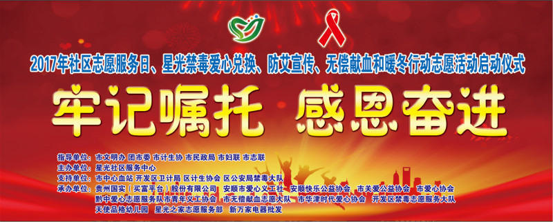 2017年社区志愿服务日、星光禁毒爱心兑换、防艾宣传、无偿献血和暖冬行动志愿活动启动仪式流程