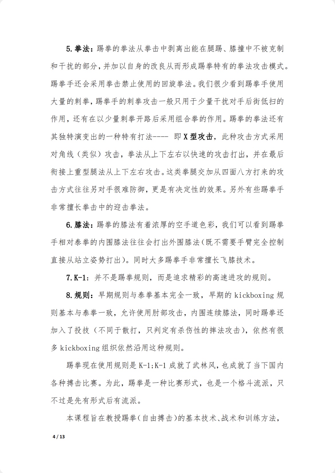 一、踢拳的训练内容包含拳击、空手道、柔道、中国跤和跆拳道技术