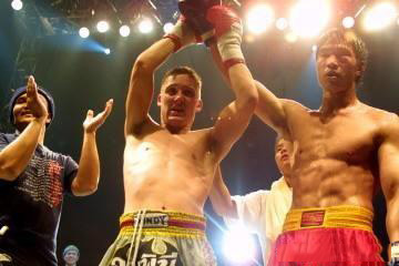 2002年,郑裕蒿为国出征,在中泰对抗赛中完封泰国拳手,夺得75公斤级冠军!随后又接受日本修搏联盟邀请亮剑东瀛,成为了第一位征战日本修搏赛事的中国散打选手!在八人大战中,郑裕蒿凭借着出色的腿法两战全部TKO对手获胜,杀入最后的决赛。决赛中,郑裕蒿的对手正是日后2005、2007年K-1双冠王者安迪·苏瓦。面对着安迪永动机式的交叉式进攻,郑裕蒿则以凶狠的鞭腿与侧踹迎击,并且一次又一次施展摔法将安迪摔倒。三局战罢,双方平分秋色。加时赛中,郑裕蒿的转身腿法依旧为安迪制造了不小的麻烦,两人最终打满四局,安迪凭借微弱点数战胜郑裕蒿,而郑裕蒿的优异表现不但赢得了安迪的尊重,同时也也让无数日本武粉感受到了武术散打的威力!
