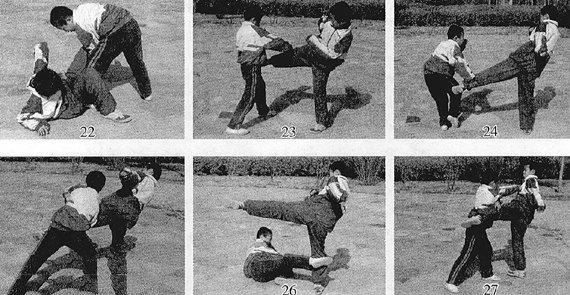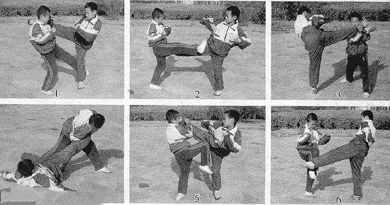 要点与提示:提膝快速,拦截准确有力,上体微含身,意气力相合。此为硬对硬的技法,拦截时腿部肌肉要收紧,以增加抗击力。